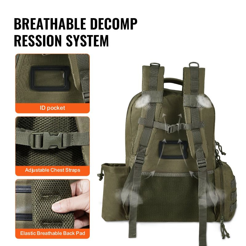 Equipped with adjustable padded shoulder straps, a chest strap.