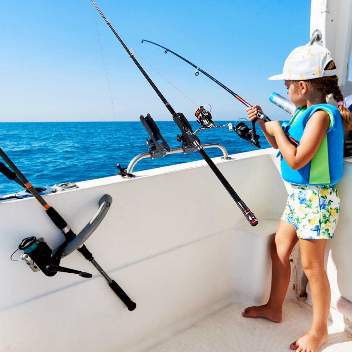 Made of heavy duty ABS, our Boat Fishing Rod Holder can mounted on anywhere firmly by multiple ways, suitable for boats or kayaks. You can put it into the perfect position by its 360° rotatable design. Compact and lightweight, it\'s easy to store and carry.
