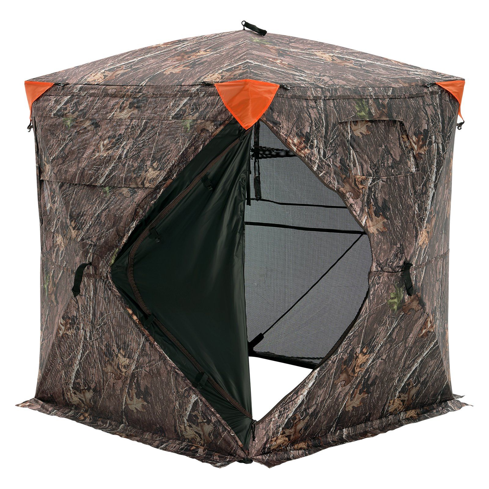 VEVOR Hunting Blind: Your ultimate assistant for outdoor hunting and tracking! Our hunting blind features three full panels of one-way see-through mesh, providing a 270° unobstructed view. Spotting animals through these panels makes your shots more accurate. The ground blind is equipped with an upgraded metal support zipper door. The door can be pulled and buckled quietly, reducing noise and preventing the game from being startled. The upgraded materials and craftsmanship of our see through hunting ground blind ensure it is resistant to cracks and leaks. It's perfect for use in sunny, rainy, or snowy weather. Our blind for hunting is designed with user-friendly features to make your experience more comfortable and convenient. Our pop up ground blind is perfect for hunting in outdoor jungles, wetlands, and snowfields. It can also be used as a photography tent.